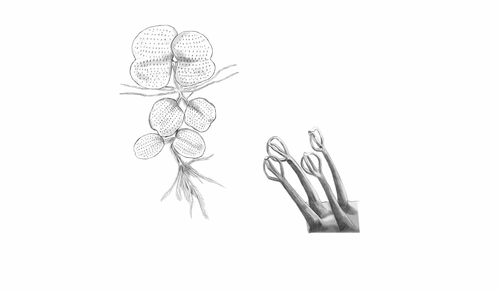 עלי השרך מכוסים שערות אלסטיות צפופות. כל ארבע שערות מקובצות יחד במבנה דמוי מטרף ביצים ובולטות כשני מילימטרים מהשטח. קצה ה"מטרף" כולא טיפות מים כך שנוצר מרווח של אוויר בין משטח השרך לקצה השערות.