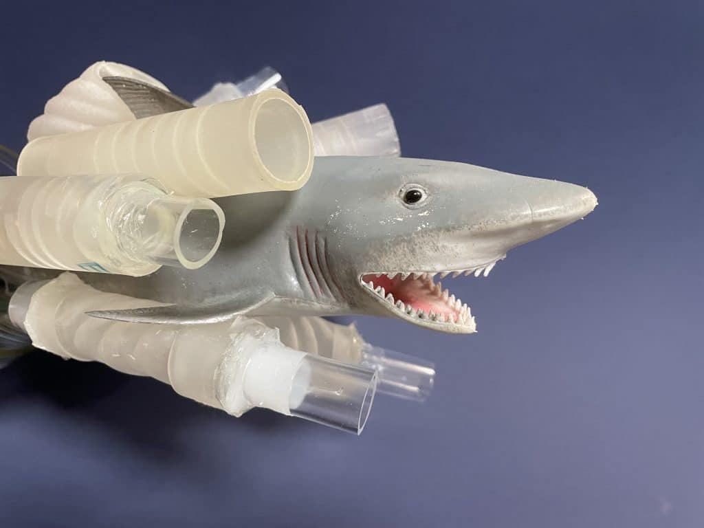 הסקרנות המדעית של עדו התעוררה, וגם הזדמנות לייצר שת"פ עם המעבדה של פרופ' אל נלסון באוניברסיטה, שמתמחה בפיתוח שיטות מתקדמות להדפסת תלת הממד. עדו ושותפיו למחקר הניחו שהסיבה לאסימטריה שהתגלתה היא הגמישות של הצינורות במעיים והחליטו להדפיס צינורות במבנה דומה לצינורות המעיים: צינור עגול חיצוני, עם ממברנה ספירלית גמישה בפנים. הפרמטרים של המודל הבסיסי נלקחו מהמעיים של הכריש, ואז התחילו לשנות פרמטרים אלו, כל פעם פרמטר אחר, במטרה לבחון איך פרמטרים שונים בגיאומטריה משפיעים על האסימטריה.